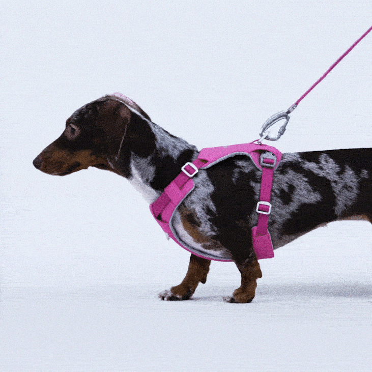 どんな動きもしっかりキャッチし、愛犬への負担は最小限になるよう、設計段階から何度も試験を重ねて開発されています。